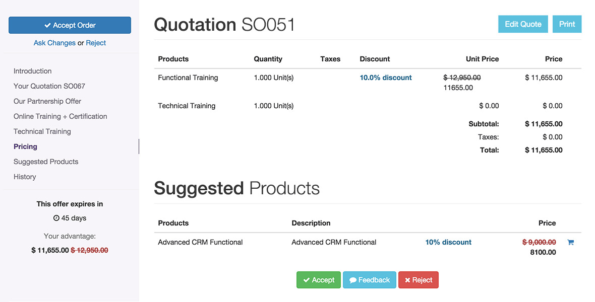 Envoyez des devis clairs et complets à vos prospects. Glissez et déposez simplement des blocs de constructions afin d’ajouter des descriptions de produits, de belles images ou encore d’autres informations additionnelles.